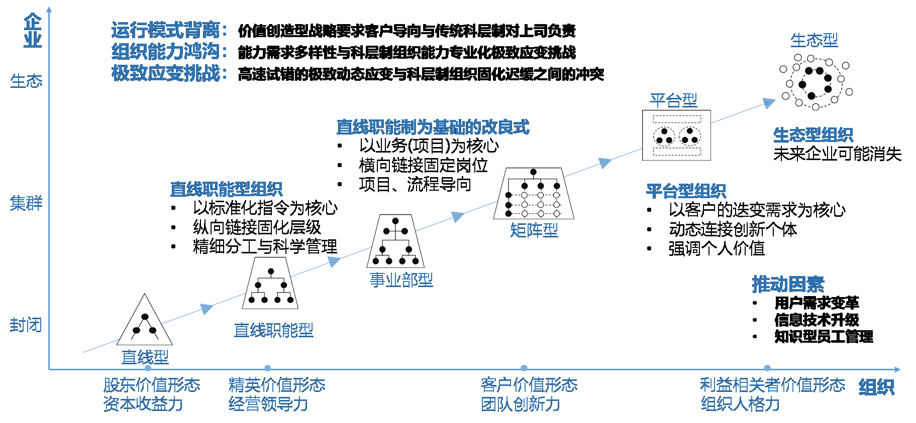 消費者驅動對企業(yè)提出快速響應用戶的要求,傳統(tǒng)組織結構已經(jīng)不適用,組織必須平臺化